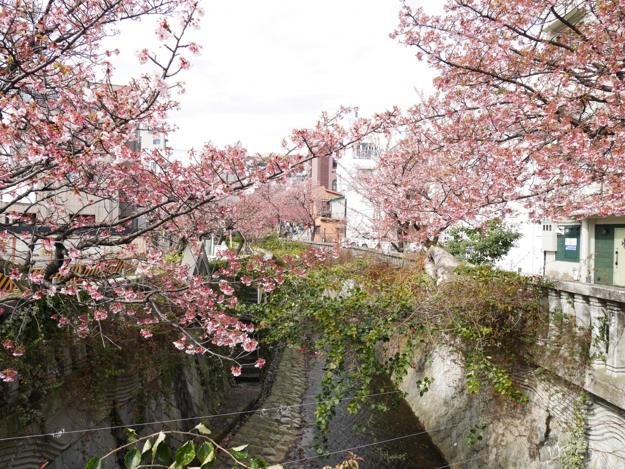 糸魚川の両岸に桜の木が並んできます。ソメイヨシノとは違った種類で、一足先に桜の花見を楽しめます。訪れたときはすでに花が散ってしまっている木が多かったのですが、ところどころまだ花が残っていました。ソメイヨシノよりピンクの色合いが濃く、華やかな感じがしました。次はぜひ満開の時に期待です。
