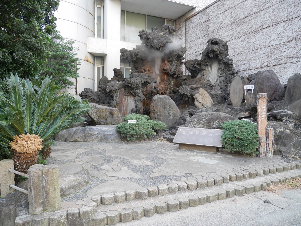 熱海七湯のひとつです。こちらの湯は間欠泉です。昔はかなり豪快に噴出していたらしいですが、どんどんと減少していって、昭和初期にはついに止まってしまったとか。現在のは、昭和37年に人工的に噴き出す、間欠泉として整備されたもので、残念ながら自然のものではないようです。