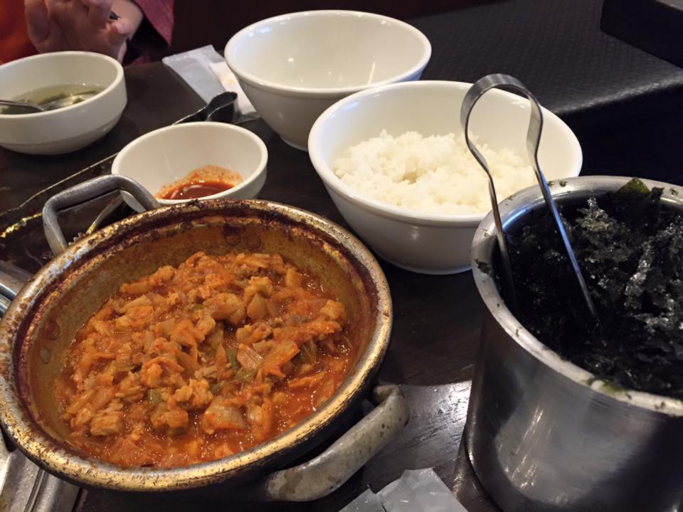 こちらの七分豚キムチチゲを韓国好きの友人と行きました。職安通り沿いにあり、カンホドンチキンも近くにあります。豚とキムチを7分間煮込んで一口大に切ってあってご飯に混ぜて海苔をたっぷりかけて食べるととても美味しいです。