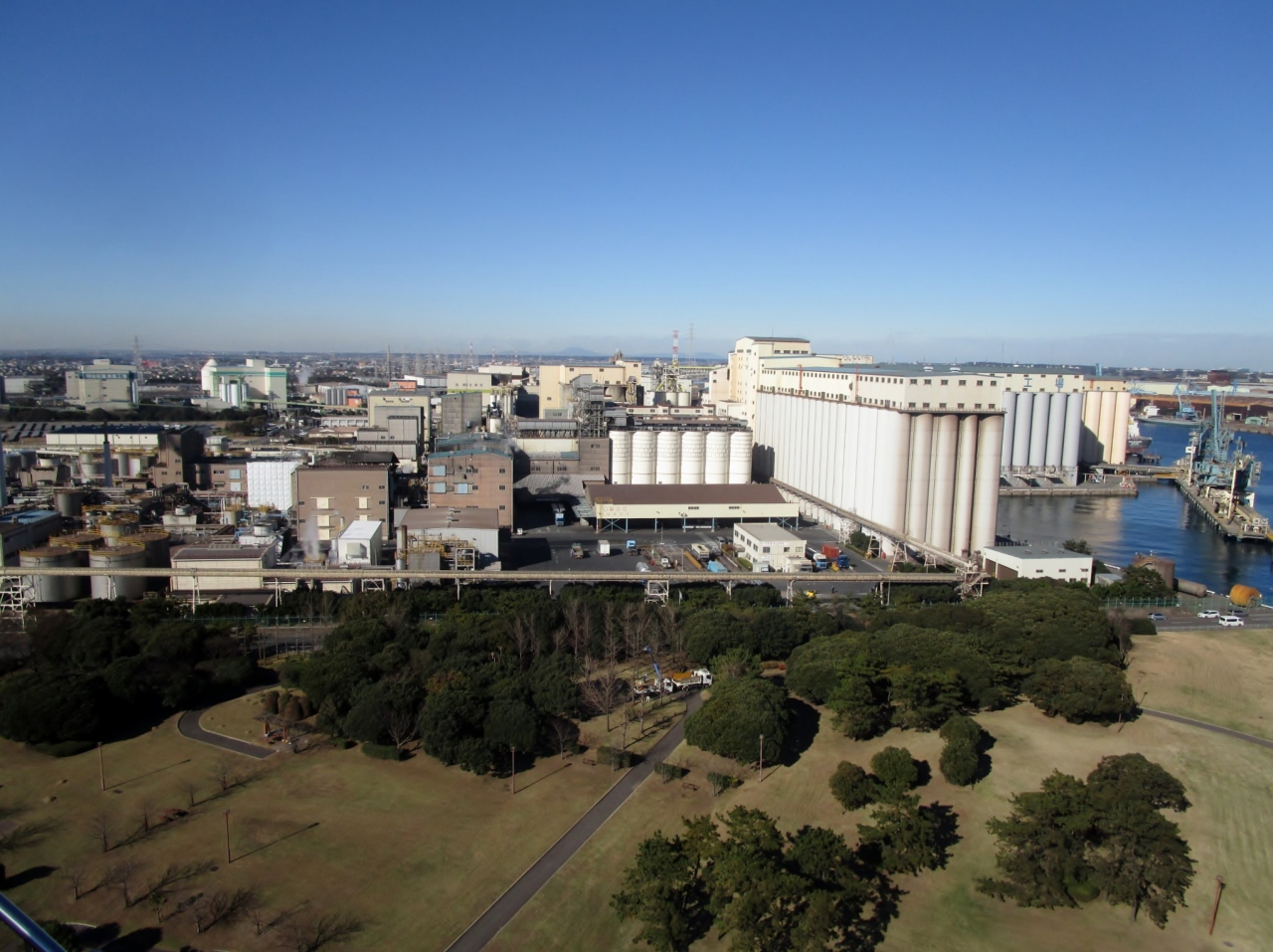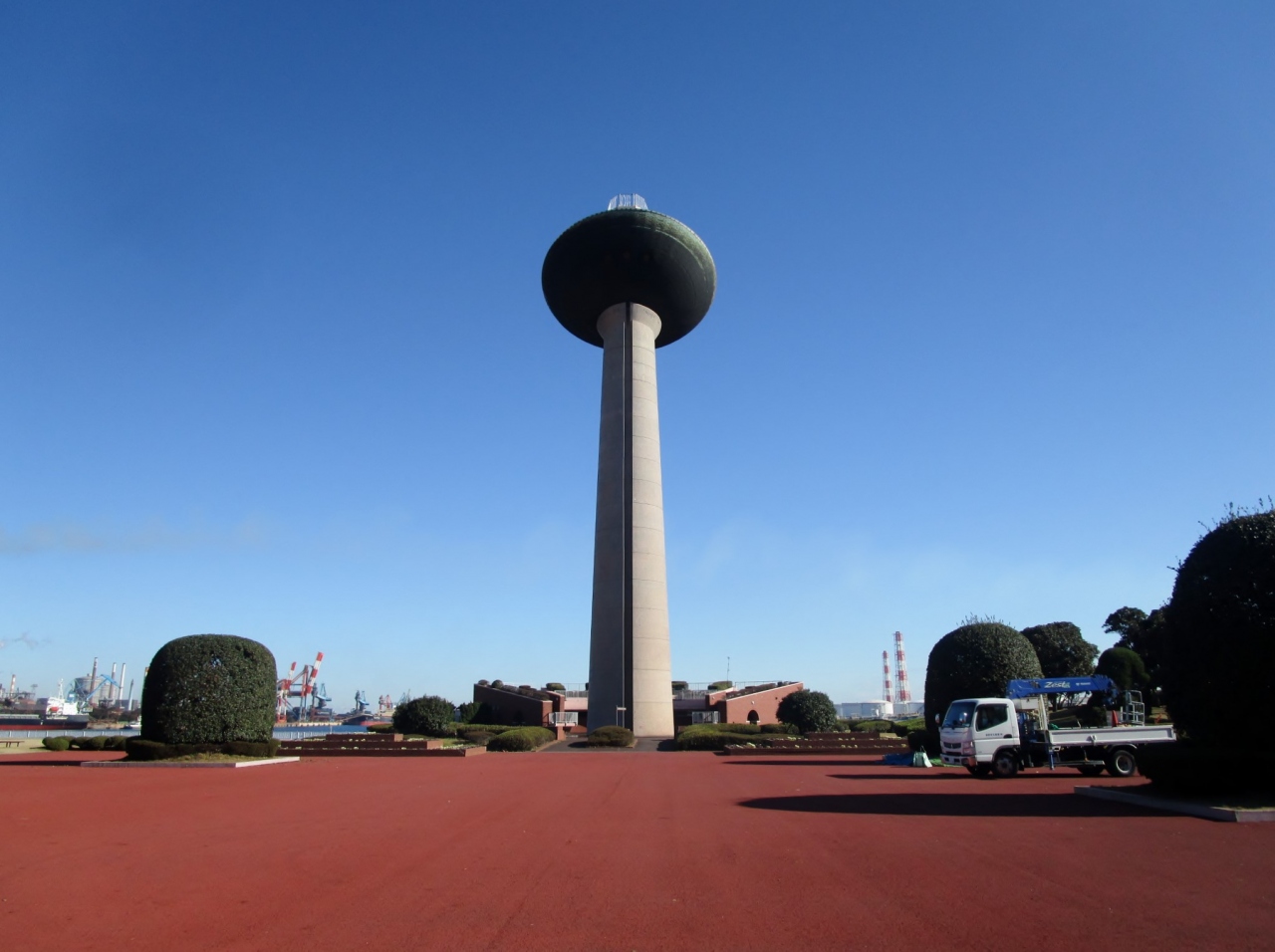 港公園にある高さ52mの塔。あまり高そうではないけれど、展望台からは鹿島港と工場地帯はおろか、関東平野が一望できます。展望塔内や1Fには鹿島港開発の歴史等の展示もあり(1Fの展示スペースは無料)。"工場萌え"の方は楽しめる場所です。
