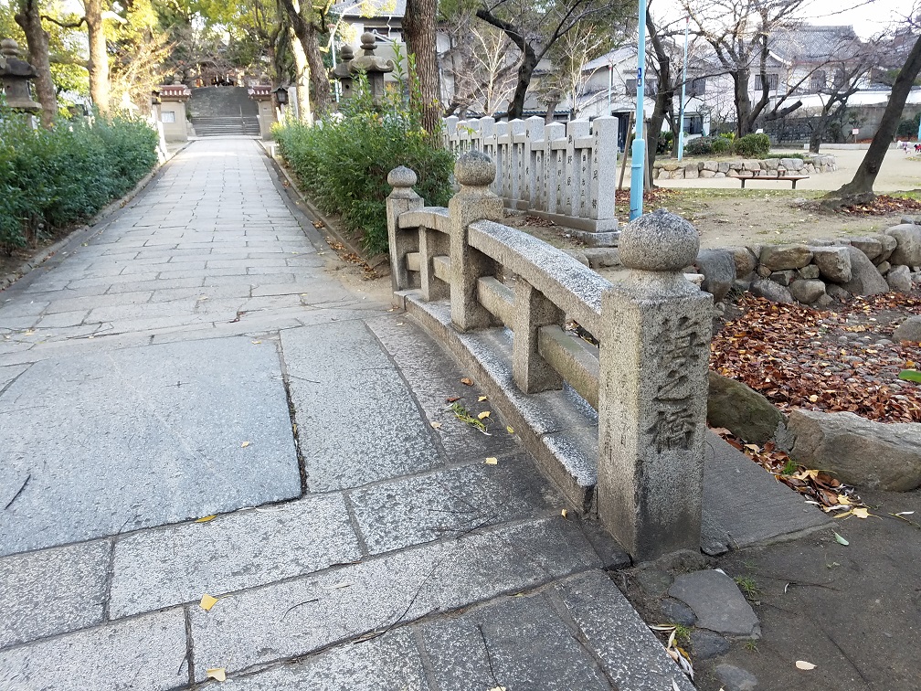 鳥居を潜って石畳の表参道を進むと僅かに起伏した橋がありました。