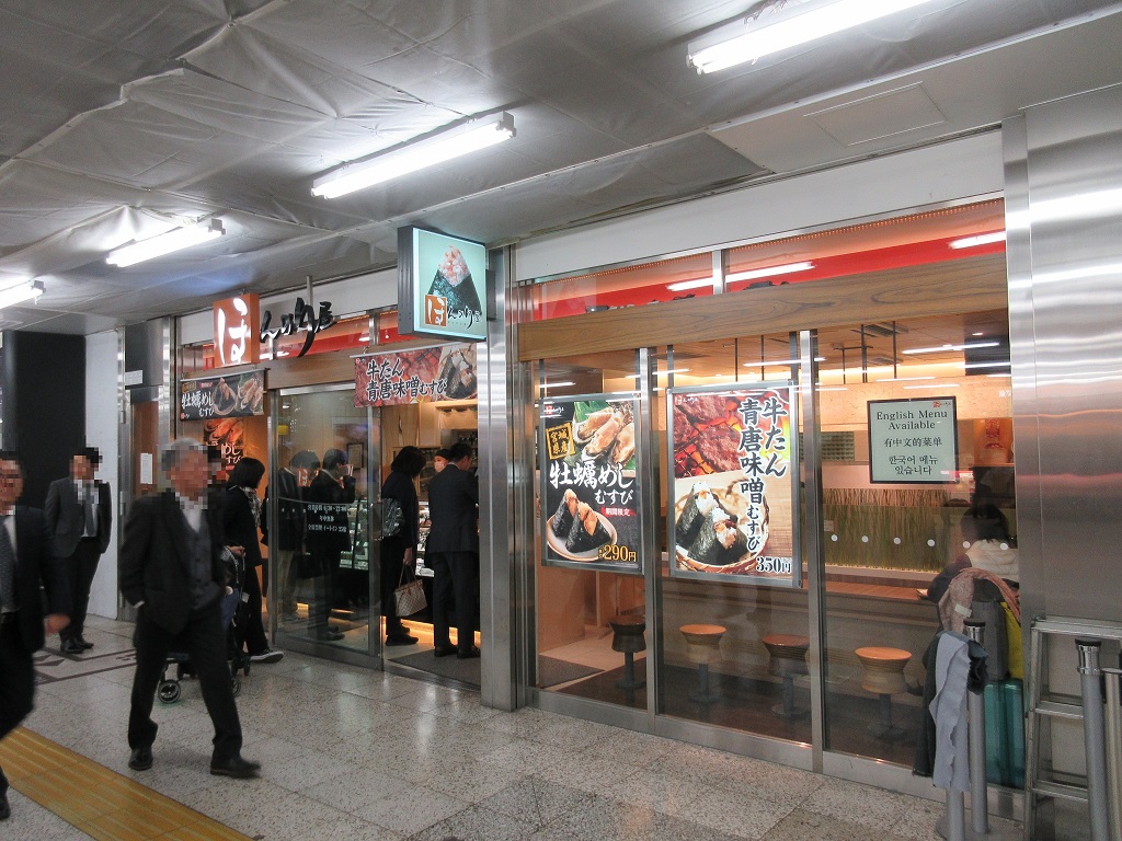 東京駅八重洲側出口そばにあるおにぎりの専門店です。この日は朝ごはんを取らずに出発して、どこか簡単に食事できるところがないかと思っている矢先にこのお店の店頭の「牛たん青唐味噌350円」の表示が目に留まりました。更にイートインコーナーの席が丁度空いているではありませんか。すかさず飛び込み、10分ほどで朝食を済ませることが出来ました。上質な素材を使った絶妙なお味。値段はコンビニのおにぎりに比べると倍以上ですが、十分満足できました。