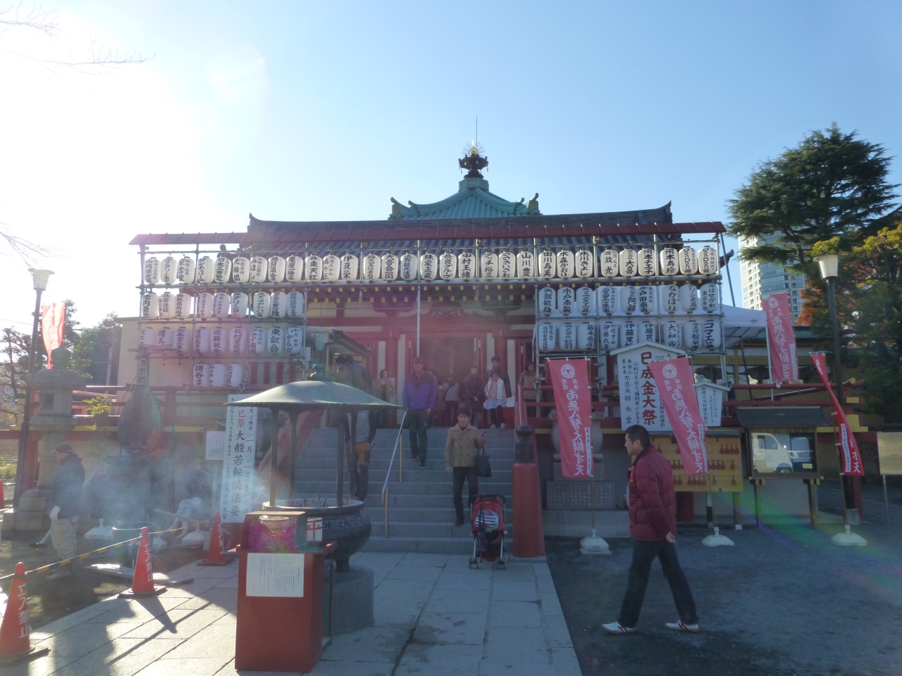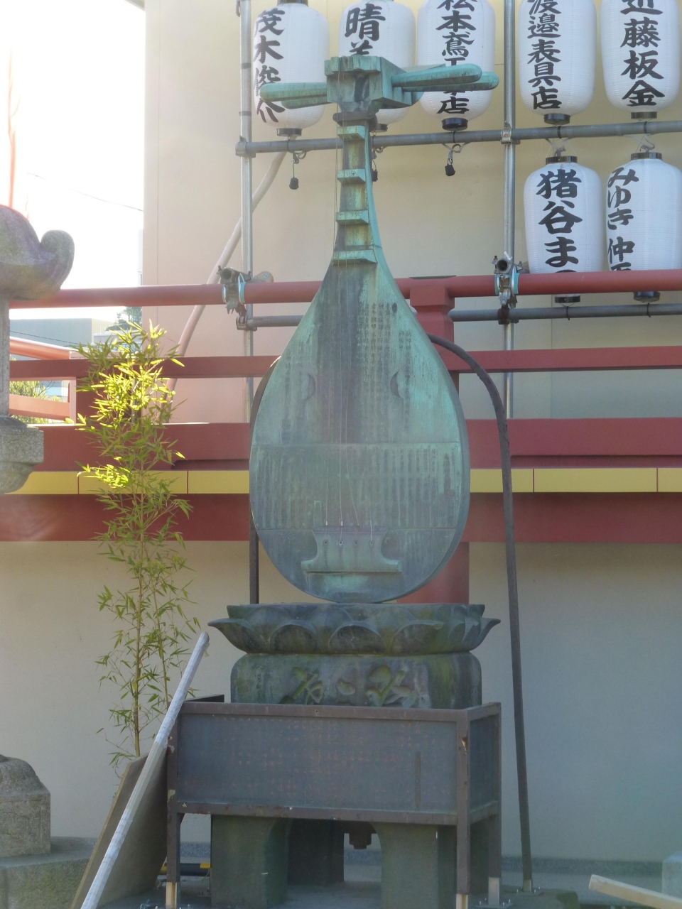 池に突き出したところに弁天堂があるのでしょう,そこにわたる道の両側にお祭りの時の屋台のように食べ物屋さんなどが出ています.いつもお祭りということですね.お堂は寄付をされた方の提灯がたくさん下がっていて面白かったです.