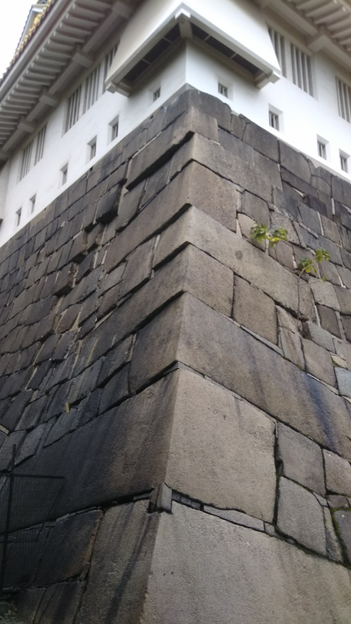 大阪城周辺の第二次世界大戦の戦跡を調査する目的で訪問。その際に大阪城自体もついでに見学して回りました。遠くからでも大阪城天守閣の大きさはわかりましたが、実際に天守閣の下にいくと天守閣の桁違いの大きさがよくわかりました。いままでいくつかお城も訪問していますが、これだけ大きな天守閣は名古屋城か大阪城くらいではないでしょうか。実はこの大阪城天守閣にも戦跡が残されていまして、本丸の北西側の本丸石垣が爆撃でずれてしまっているのが現在でも残されています。これだけ大きな石が、しかもきっちりと並べられている石が爆風でずれてしまうとは恐ろしいですね。