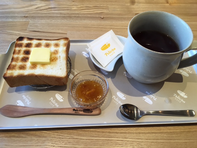 ペリカンの食パン厚めトースト1枚と、バター、ジャム。