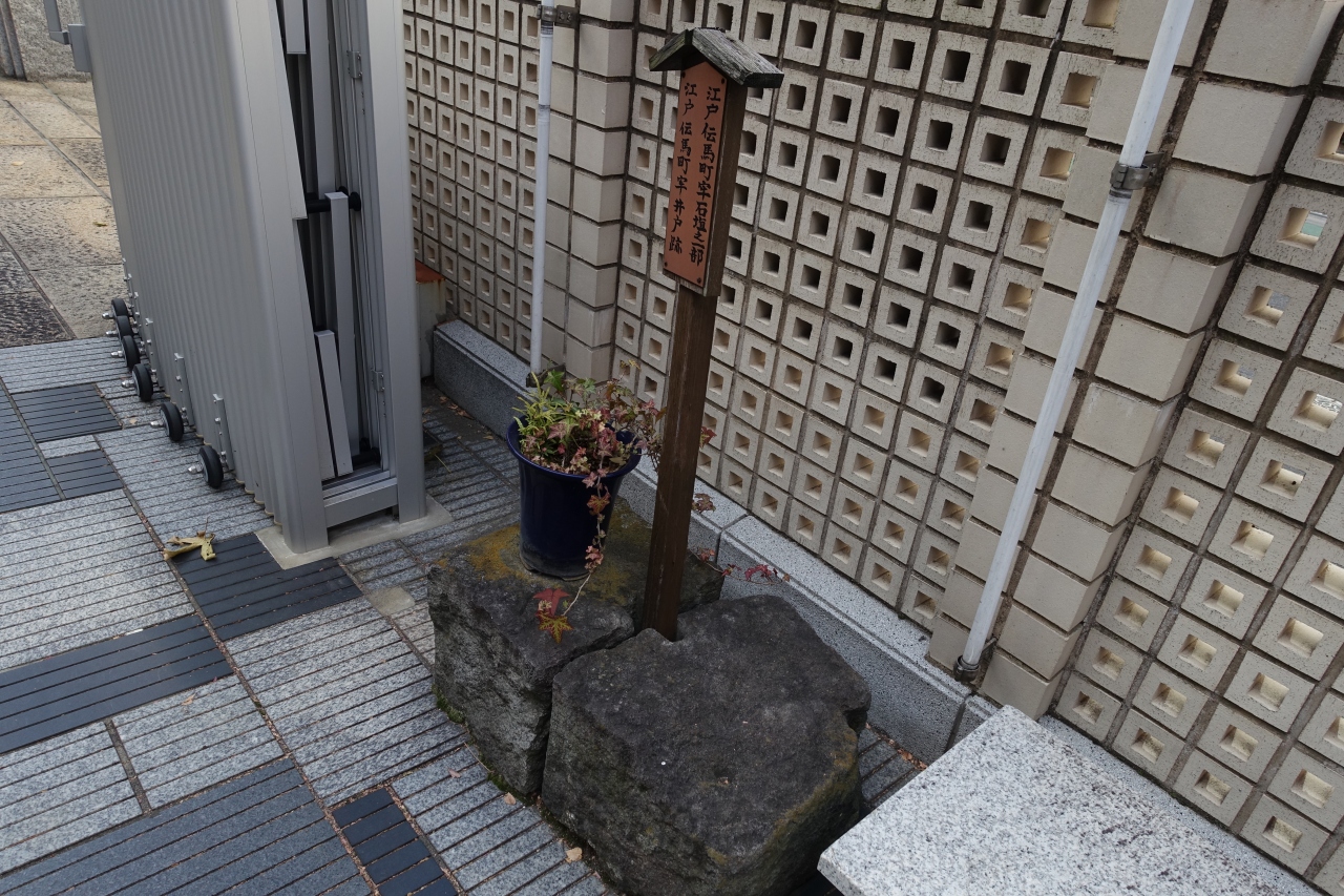 小伝馬町の十思公園の前に大安楽寺があります。外壁の間、道路に向かっての面に江戸伝馬町処刑所跡と書かれた、古い石が建てられています。ここだけ、改築前のお寺の石柱が残されているのだと思います。境内に入ると、牢の石垣の一部と、井戸の跡の案内がありました。