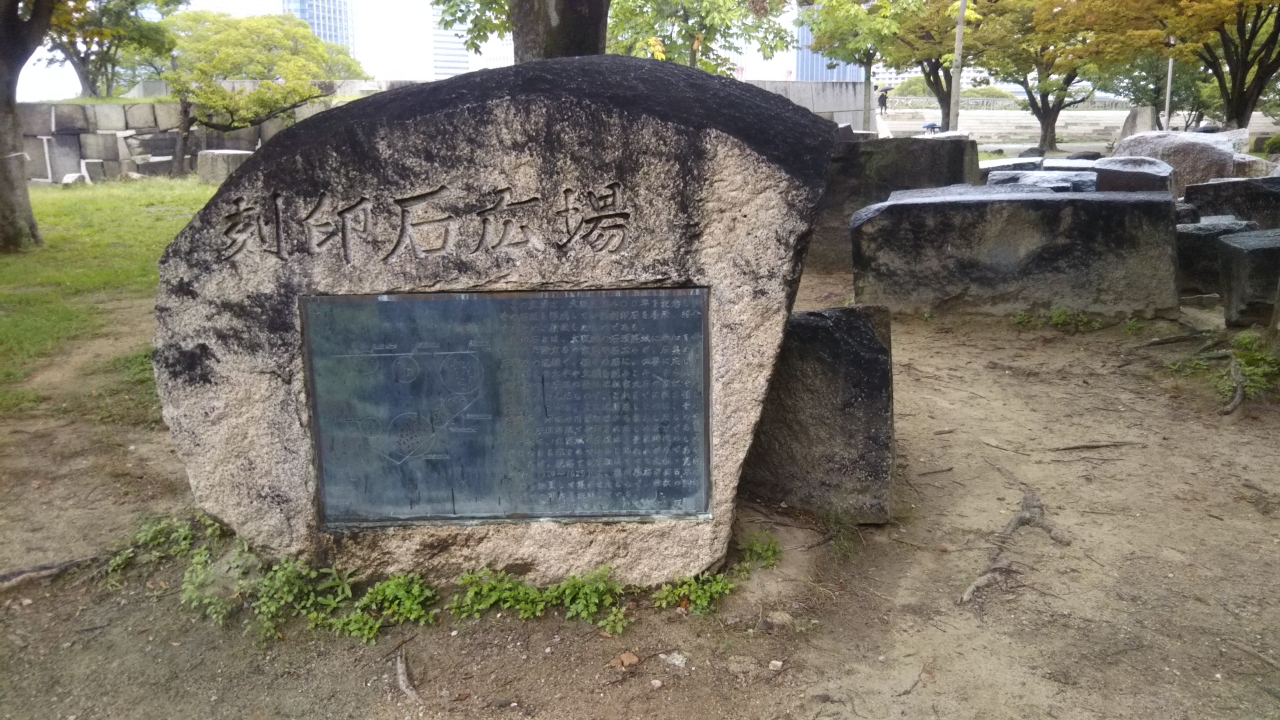 大阪城の北側に刻印石広場という広場があります。このあたりには石垣に使われる巨石がごろごろと転がっていました。石には様々な家紋のような模様が描かれ、採石を命じられた大名が「自分らの仕事だ」と言わんばかりに目印を付けていたのが目に浮かびます。きちんと保存されている場所ではありませんが、大阪城築城の一角を見れた感じがして楽しめました。