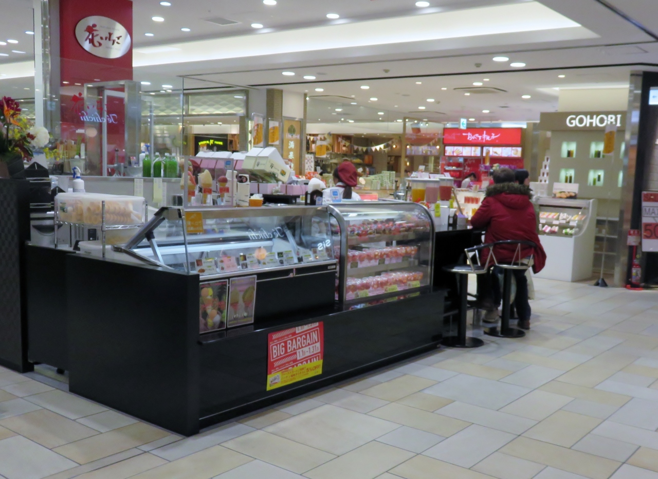 岡山駅にあるフルーツショップ。いろいろな果物のほか、ケーキやジェラートもあります。