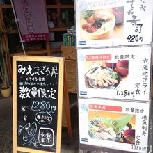 伊勢市駅から外宮までの参道沿いには海産をあつかった食事どころが並んでいます。