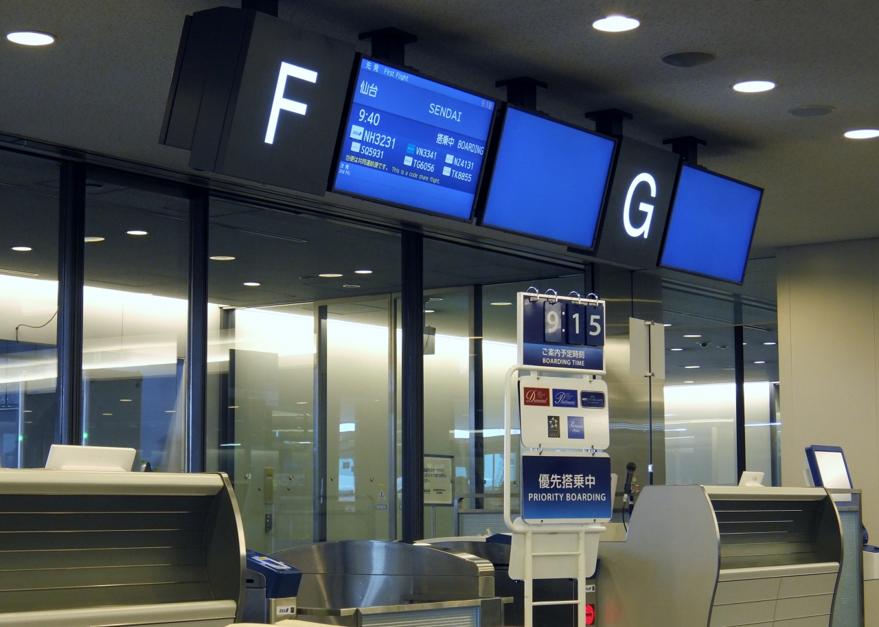 電車の成田空港駅を降り、改札を出て左手にまっすぐ進むとANAの国内線チェックインカウンターがある。近くにコンビニはあるけど、ゆっくり飲食できる場所はなく、4階の国際線ターミナルとは大違い。飛行機への搭乗もボーディングブリッジがなく、バスでの移動だった。
