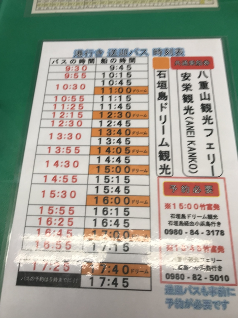 石垣港ターミナル内の中でも竹富島でのプランが豊富だったので、こちらにしました。ホテルにあったパンフレットに割引券が付いていたので使おうと出そうとしたところ、ちぎれて紛失しまいました。しかしカウンターでは快く割引してくれました!