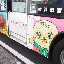 子供の叫び声がした方向を見ると、アンパンマンが描かれたバスが。