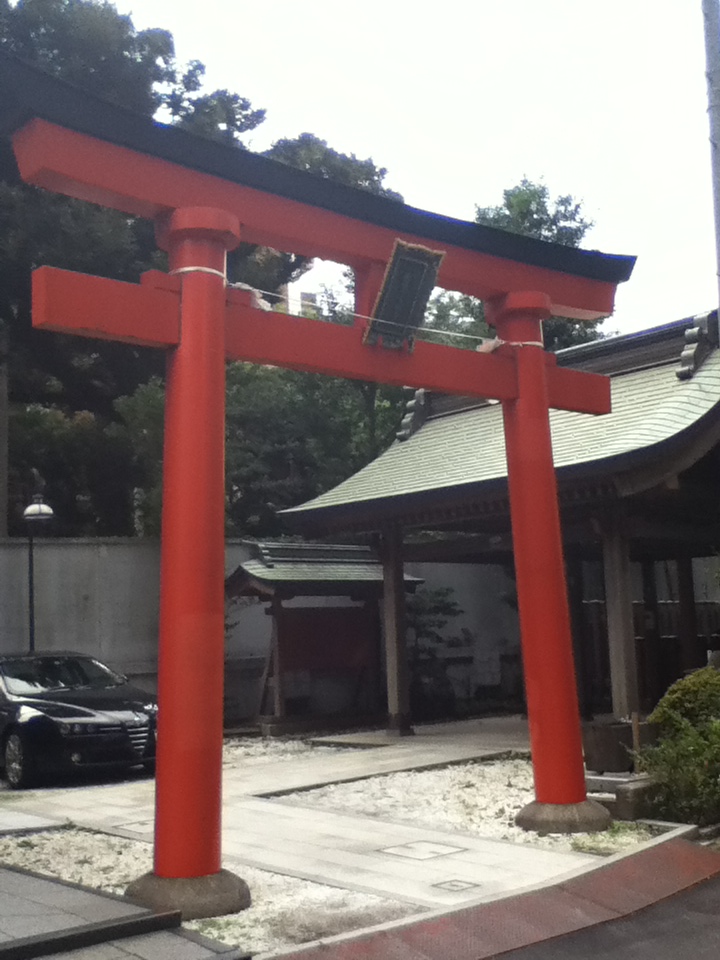 根津駅南東の路地沿いにある。路地横に鮮やかな朱色の鳥居があり、その右奥に拝殿がある。平日午後、他に誰もいなく静かであった。お勧めの点は、文明年間に創祀されて以来多くの人々から敬拝されていること、拝殿はユニークな形状をしていること、参拝すれば願い事が叶うかもしれないこと、境内は広くないが拝殿の北側に弁慶鏡ケ井があること、境内にていると心癒されること、駅から徒歩で行けることである。