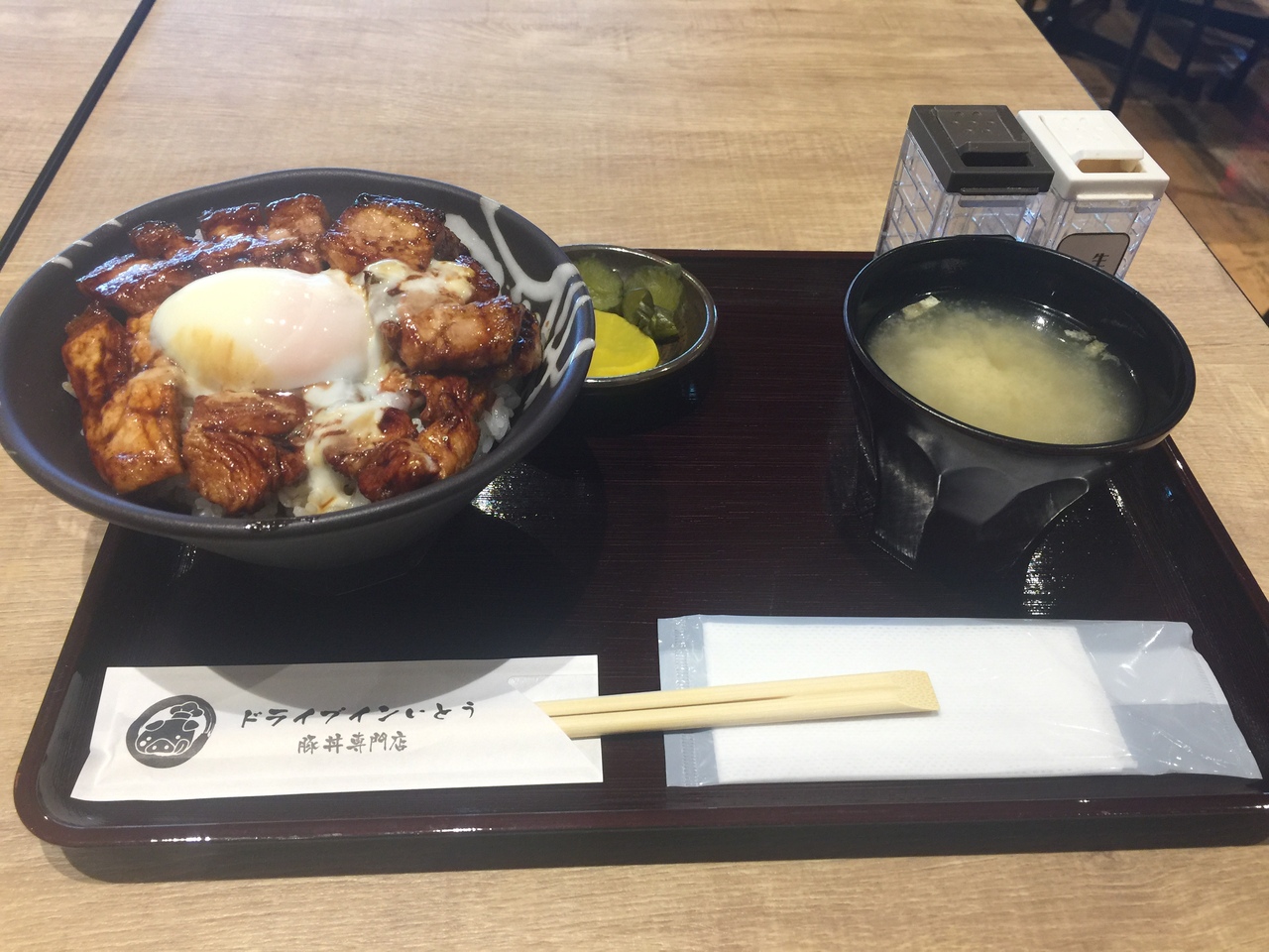 新千歳空港のJALの搭乗口に入ってすぐ、フードコートの中にある。温泉たまご豚丼1,080円を発注。15分くらい待って出てきた豚丼を見ると、豚が小さいんじゃ。温泉たまごを混ぜて食べると美味いは美味いんだが、物足りなさを感じる。やっぱ家賃が高いからかなあ。