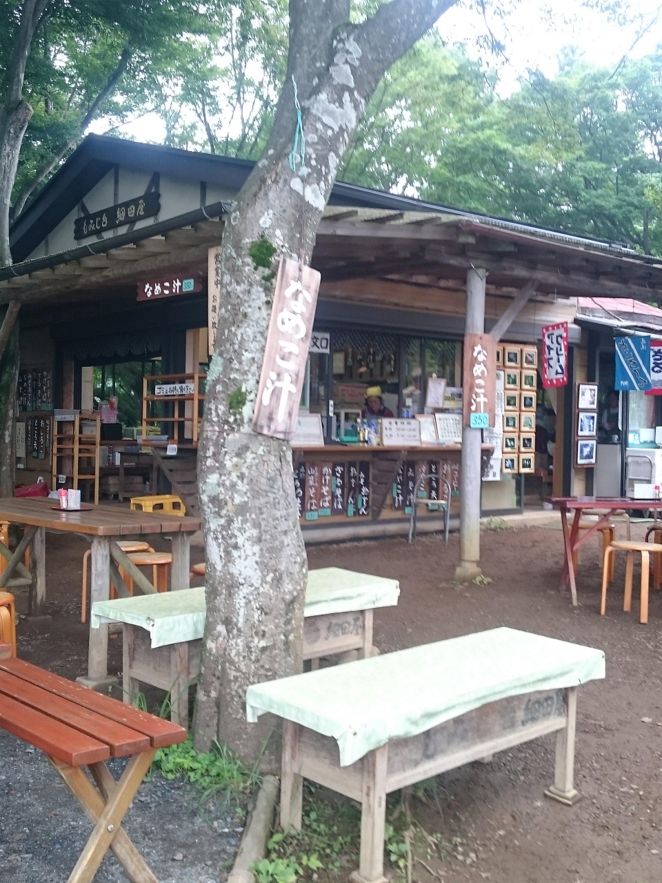 細田屋はもみじ台のすぐそばにあり、屋号も「もみじ台細田屋」となっています。蕎麦や心太やお汁粉といったメニューがあります。なめこ汁の価格を比較すると小仏城山の茶屋よりも割高感がありました。細田屋は綺麗な建物でお店付近は高尾山から陣馬山方面に下りてきた人もいるので賑わっていました。逆に陣馬山から高尾山に歩いてくると、このお店は高尾山にゴールしたような場所です。ここを過ぎると最後の石階段を上るだけで高尾山山頂です。細田屋の脇には「これより奥高尾」と書かれた道標があります。高尾山から奥高尾に入り陣馬山を目指すと5時間かかります。つまり昼過ぎに細田屋を通過して陣馬山を目指すことは無理があるので、小仏城山か景信山で引き返すことをお勧めします。
