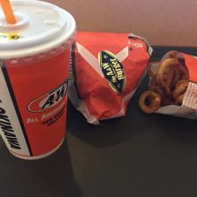 那覇空港のターミナルビルの3階の端にある。12時ちょい前だったことから10人くらいの行列が出来ていた。一番人気らしいA&Wバーガーのセットを発注。味はともかく、量が少ないのに、これで1,150円はないだろう。やっぱご飯は空港で食べちゃいかんな。