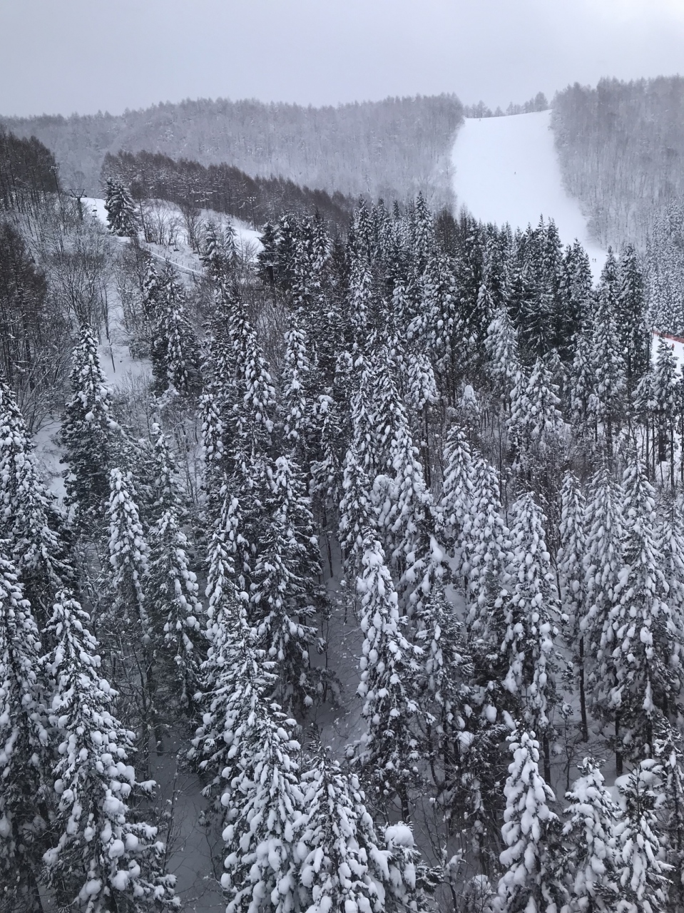 1月2日午前10時ころ、待つのを覚悟しましたが山麓線は1つ待ちで乗れました。満員乗車です。真ん中だと何も見えません。樹氷高原駅近くになるときれいな樹氷が見られました。