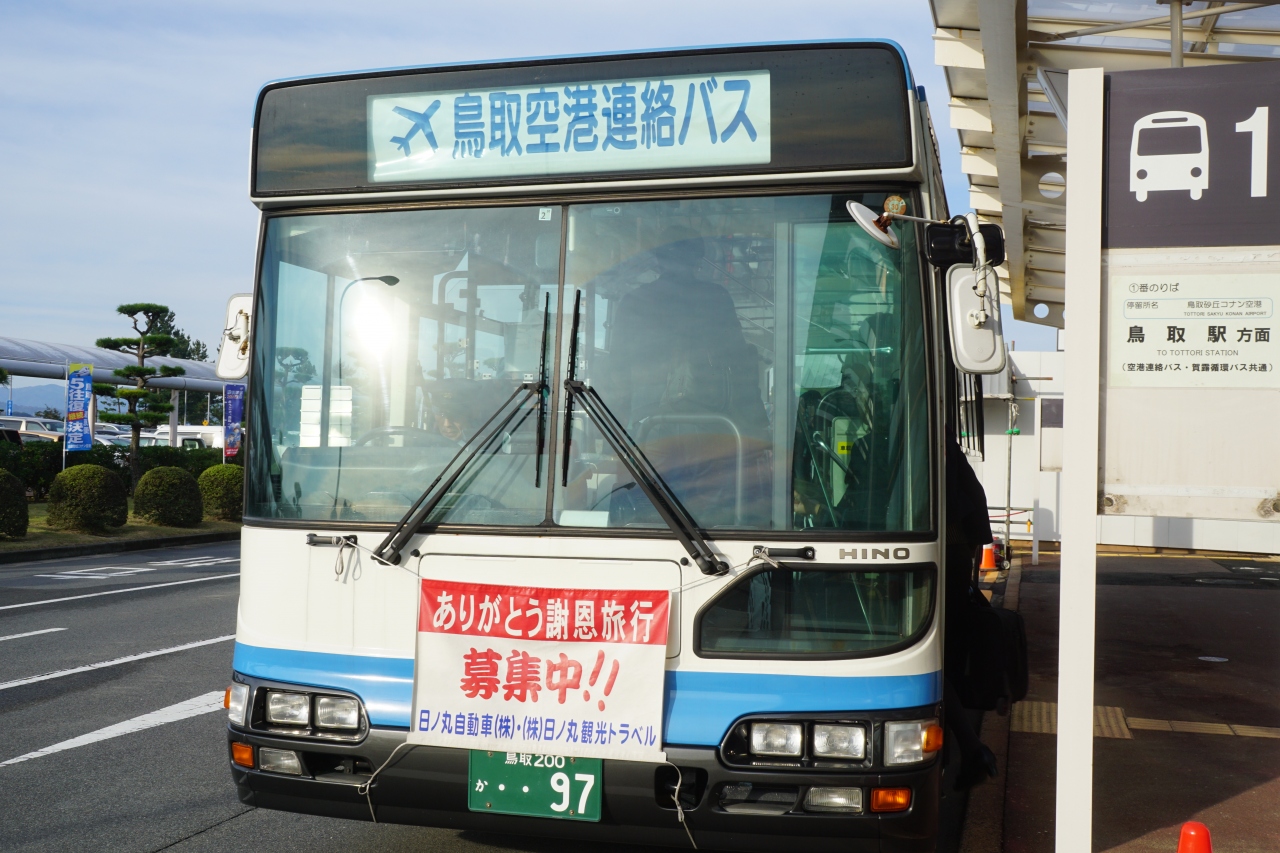 鳥取空港連絡バスはリムジンバスではなくて、一般の路線バスと同じ。しかし、鳥取市内までは約20分なので、全然不自由ではありません。もう少し車窓を楽しみたいなあとか思っているうちに鳥取駅に到着。その前には鳥取城や県庁の方も通るので、鳥取市内を観光するにはその辺りで降りた方が効率はいいかもしれません。