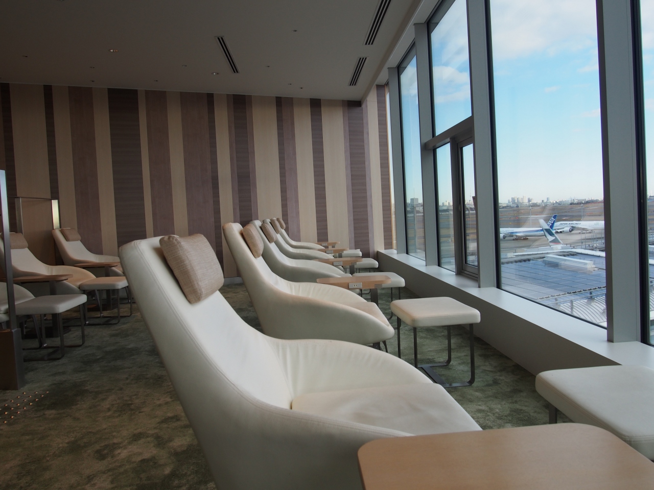 羽田空港国際線ターミナルにあるJALのラウンジ。冬休みの初日に訪問しましたが、ラウンジ内はとても広く、席数は比較的余裕がありました。食事・飲み物の種類も豊富で、コンセント付きの席も多いため、飛行機搭乗前の時間をゆっくりと過ごすことができます。