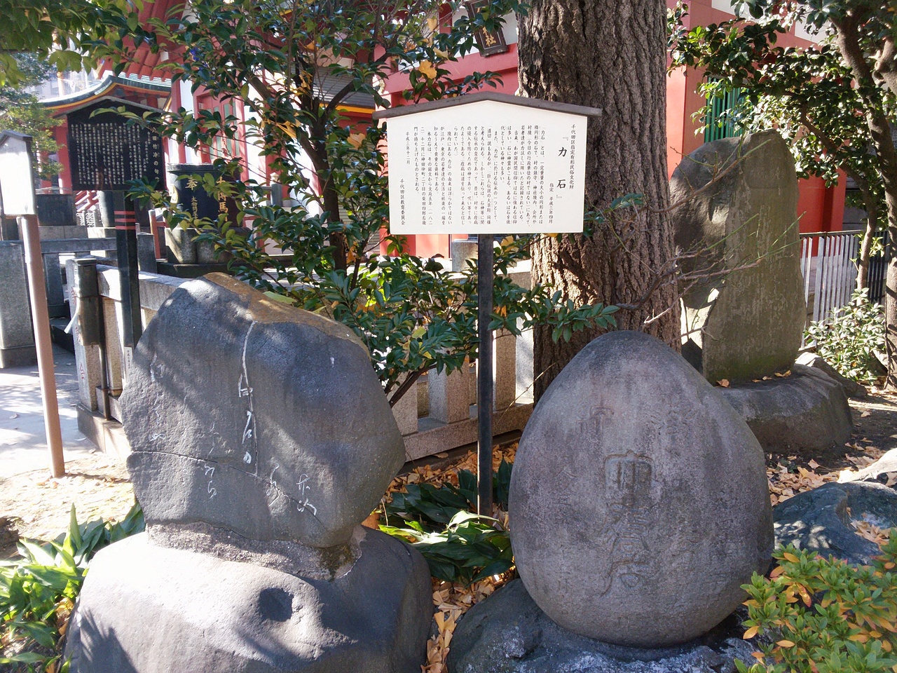 力石は、神田明神の境内の裏手にありました。大きな石で、1822年(文政5年)12月に神田仲町2丁目の柴田四郎右衛門が持ち上げたものらしいです。力石は若者たちが「力くらべ」に使った石のことで全国各地の神社や寺院などにあるようですが、これだけの大きな石を持ち上げた人が江戸時代にもいたと思うと驚かされるばかりでした。