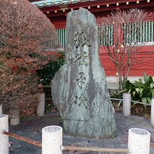 神田明神の御神殿(本殿)の裏側(東側)にありました。銭形平次と言えば、名作「銭形平次捕物控」の主人公で神田明神下台所町の長屋に奥さん(お静)と2人で住み、明神界隈を舞台に活躍していたこともあり、この地に石碑を建立したようです。石碑にはこれといった特徴はありませんでしたが、神田明神の境内を散策する際には、立ち寄ってみると良いです。