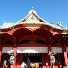 JR御茶ノ水駅から徒歩5分程にある神社です。1300年以上の歴史をもつ江戸総鎮守で神田、日本橋、秋葉原、大手町、丸の内、旧神田市場・築地魚市場など108の町々の氏神です。神田明神という名前でよく知られていますが、神田神社が正式名称です。立派は本殿などは見応えがあり、平日にもかかわらず、たくさんの人たちが参拝していました。