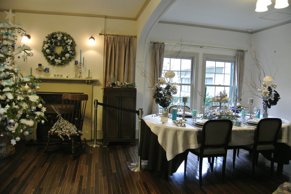 クリスマスシーズンで、クリスマスの飾り付けがとてもきれいでした。やはり洋館には似合いますね。展示スペースは見学しやすいようにするためか、扉が全部取っ払われているので、ちょっと雰囲気が間延びしたような印象を受けました。一階にはちょっとしたお土産も売っています。