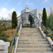 てっきり横浜気象台への入り口かと思って階段をのぼりましたが、そうではなく、そのまま階段を下りてきました。それほど横浜気象台旧館をバックにしたこの公園の景色はハマっています。逆に気象台の建物がなければ景色としてもあまり面白みがないかもしれません。