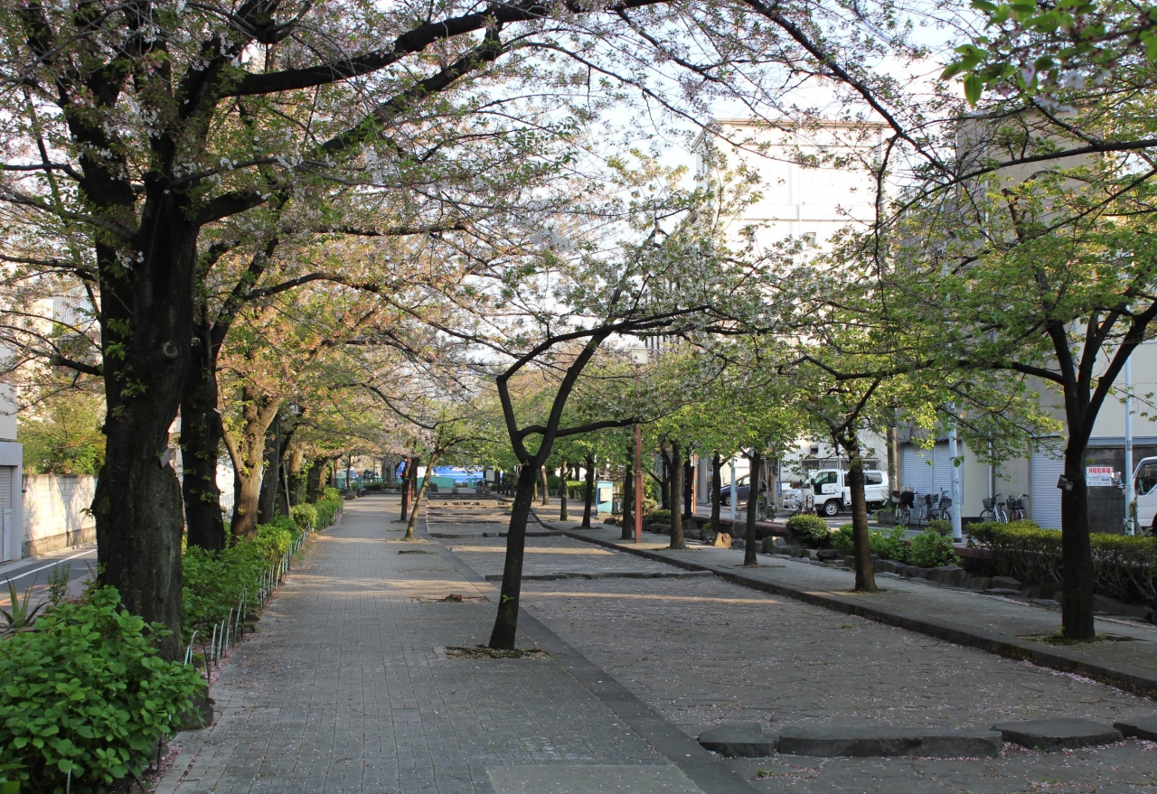 浅草から街歩きをしていてここを通りましたが、説明板に「水路を埋立て公園にした」とある通り道路のように長く曲がった公園です。