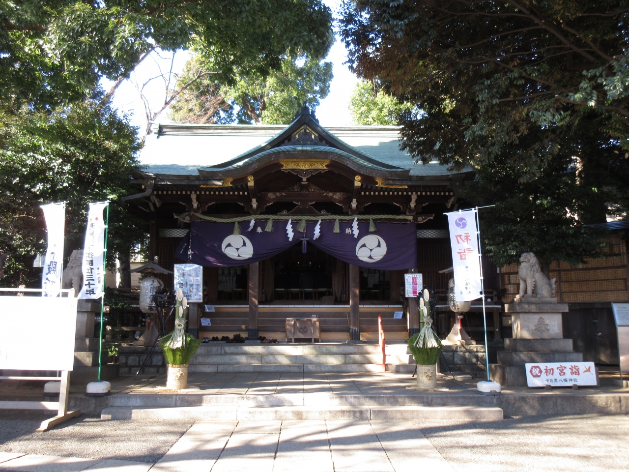 広い境内に植えられた榎やイチョウ、けやきなどの大木に囲まれるようにして社殿が建っています。昔から中目黒の氏神と崇められている神社です。正月明けの4日に訪れましたが、近くの会社で働く社員総出で参拝する姿も多く見られ、今もって篤く信仰されている神社だと感じました。社殿横には江戸文政期のものと思われる手水舎が置かれていました。階段下には大きなさざれ石も置かれていました。いつ創建されたかはわからないようですが、歴史ある神社だと思いました。