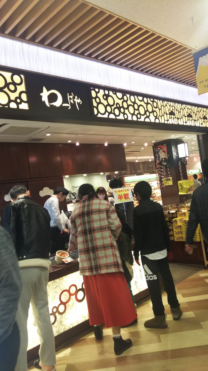 わっぱやという、わっぱ飯を取り扱うわっぱのなかに具だくさんのご飯が入っているお弁当屋さんと、ご飯のお供になるびん詰の塩辛や酒盗、かまぼこなどの練物、漬物などを扱うしいのというお店が繋がった店内になっています。