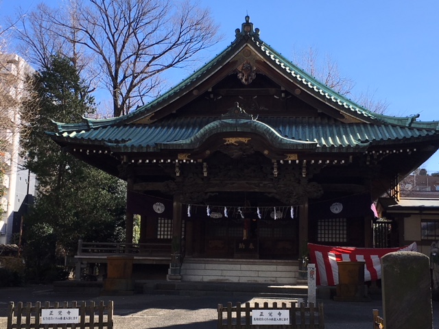 祐天寺から駒沢通りを中目黒駅の方へ戻る途中に、右手に立派なお寺が見えたので立ち寄って見ました。山手通りとの交差点のすぐ手前です。日蓮宗の寺院で、仙台伊達藩と関係が深いお寺のようです。境内には着物を着た女性の銅像があり、これも仙台藩に由来する女性だそうです。