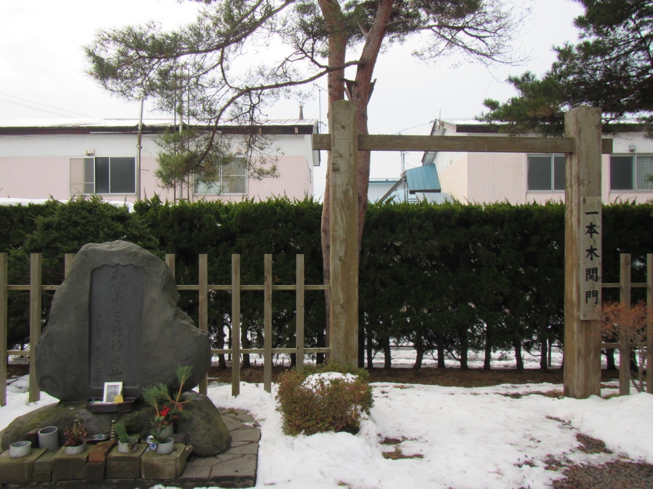 旧一本木関門の跡地付近ということで、一本木関門を再現した横に石碑が静かに佇んでいます。