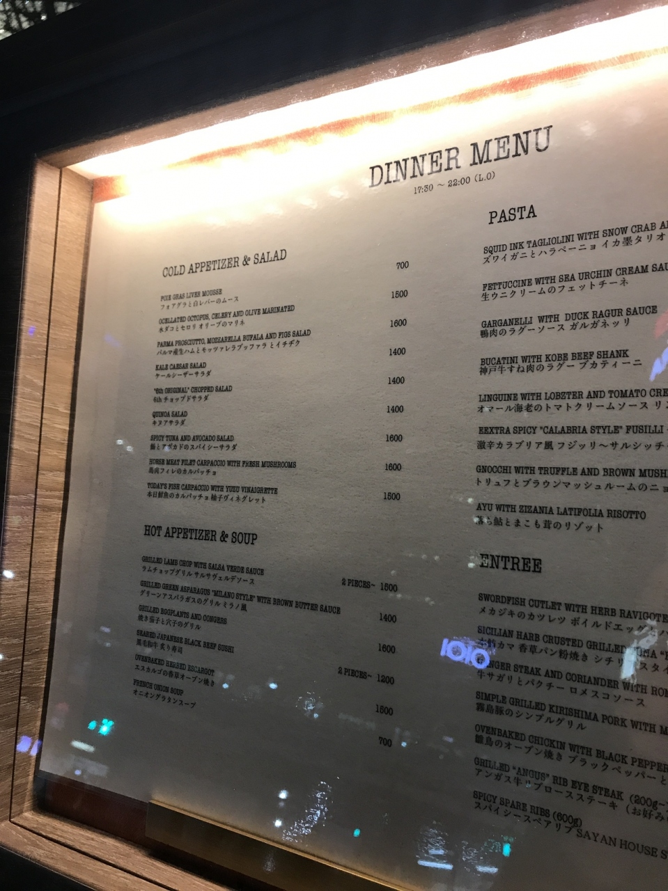 何だかオシャレなお店。気にはなっていましたが暗いし混んでいて入れなかったのですが やっと行ってきました。中は暗くやはりバーっぽい。食事はパスタなど食べられますが やはり二軒目というスタンスがオススメ。終電前のカップルや女子で賑わっていました。まあ2度目はないかな