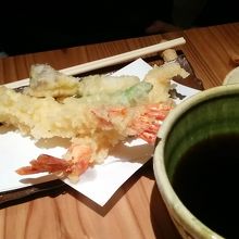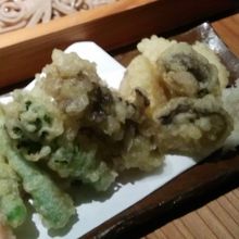 あまりにおしゃれな建物なので、何ができたのかおもわず覗いてしまいました。外からは丸見えです(笑)そのかわり中からは川沿いの素敵な景色が見れます。蕎麦は太麺と細麺が選べます。個人的には細麺の方が蕎麦の風味が感じられると思います。天婦羅とおためし胡麻だれもお願いしました。蕎麦はもちろん美味しいのですが天婦羅がサクッとフワッとあがり、素材の味も感じられ美味しいかったです。
