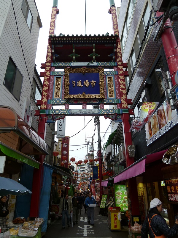 市場通りは横浜中華街大通りと関帝廟通りとをつなぐ食べ物屋さんが軒を連ねている通りで、そうしたディープな世界への入り口がこちらの市場門。ここをくぐると中国語の威勢の良い会話がそこかしこから聞こえてきます。美味しいお店も多く、この年は何回か横浜に行く機会があったので何度も通った門の一つです。