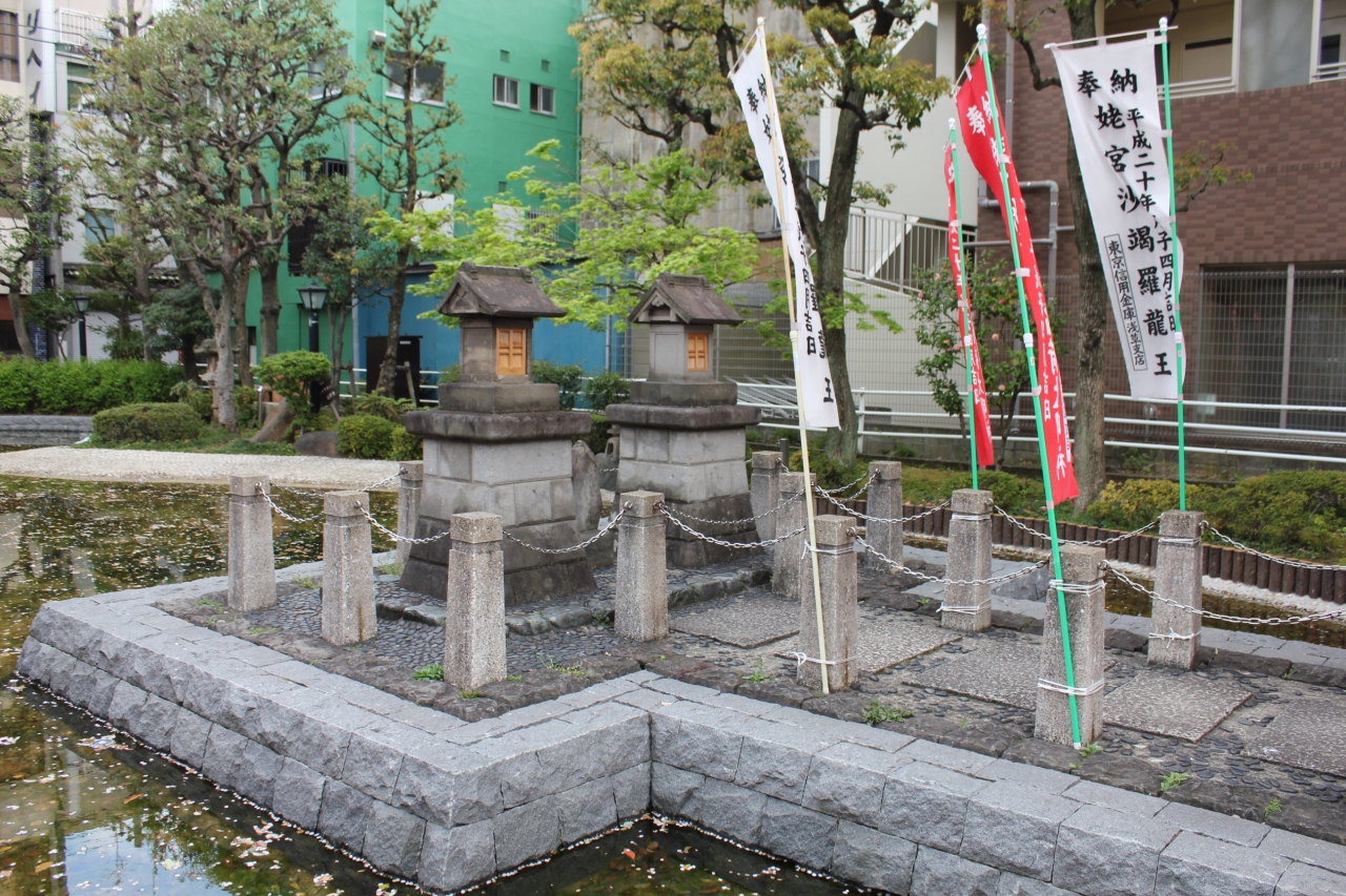 花川戸公園内にある池で、池の中に福寿稲荷大明神と姥宮沙羅龍王が祀られています。