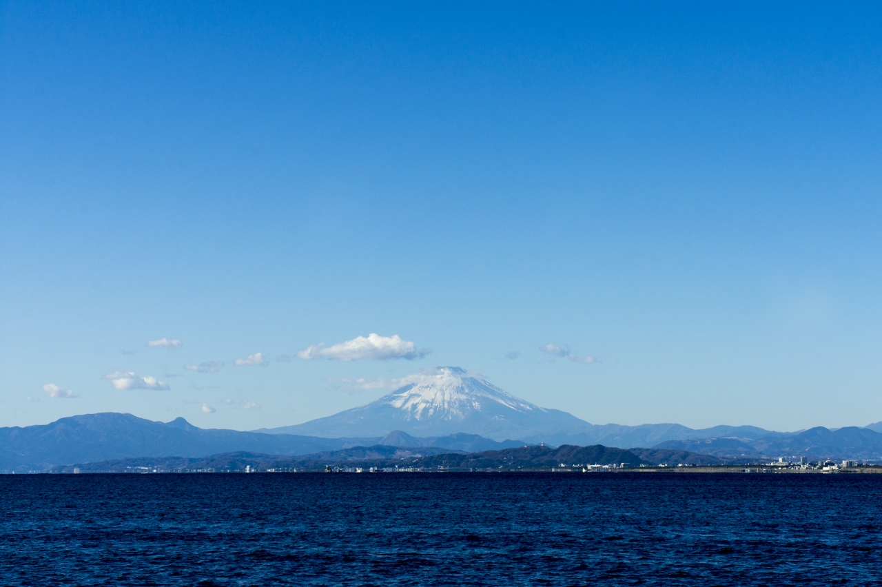到着した江の島の船着き場からの富士山の眺めも見事です。