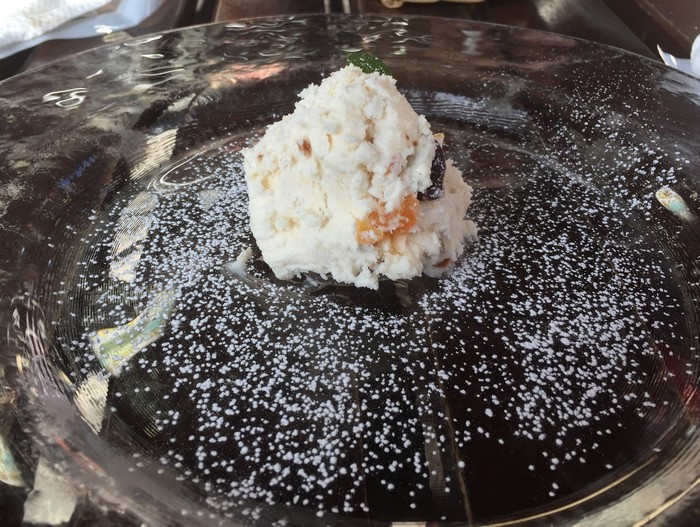 食後にはDolce(ドルチェ)はデザートはカッサータで甘さが控えめでナッツやドライフルーツの歯ごたえと風味がアクセント!
