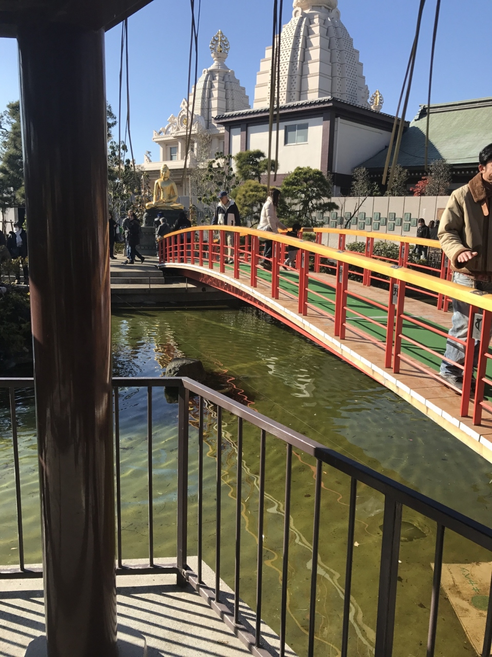 川崎大師にある、やすらぎの橋はお釈迦様、お薬師様と続し朱色の橋です。古来朱色は災難を除き、幸福を招くと言われているそうです、。縁起がよいです。欄干には、悟りへと向かう段階をしめす種子、二十文字が刻ませております。