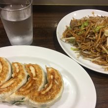 初めて食べた鉄板焼きそばは、甘めのソースがうまく絡んでいて、熱々ですごく美味しいです。味は濃い目です。餃子はもちろん素晴らしい
