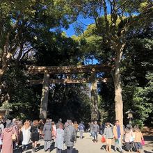 原宿駅側からの入り口にある鳥居で、とても大きくて立派でした。