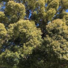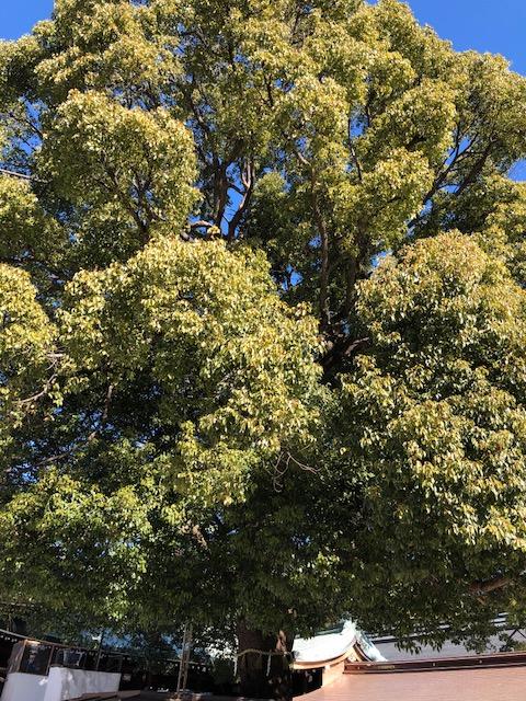 本堂の両脇にあるとても大きな楠で、晴れている日だったので青空に緑が映えてきれいでした。