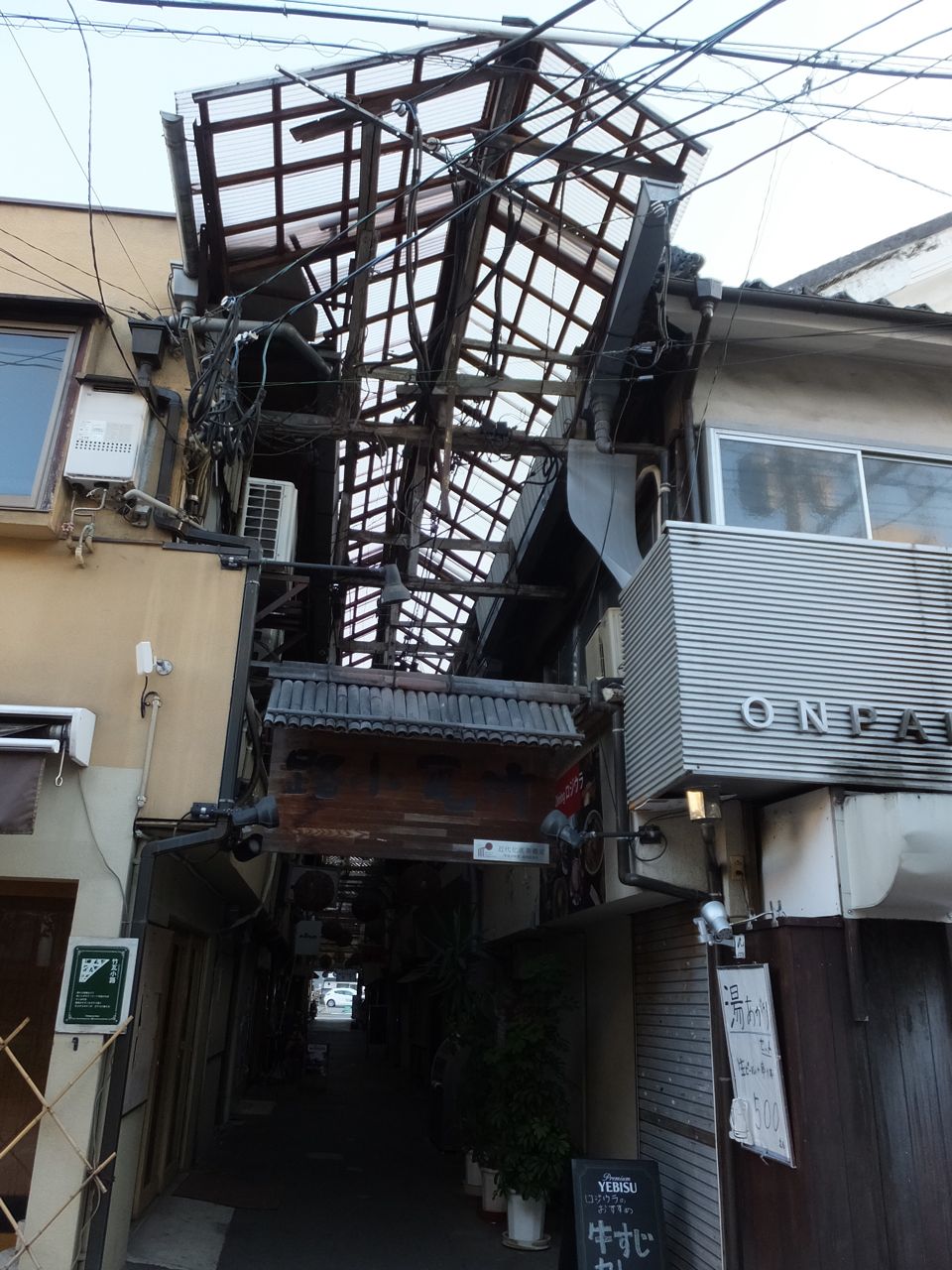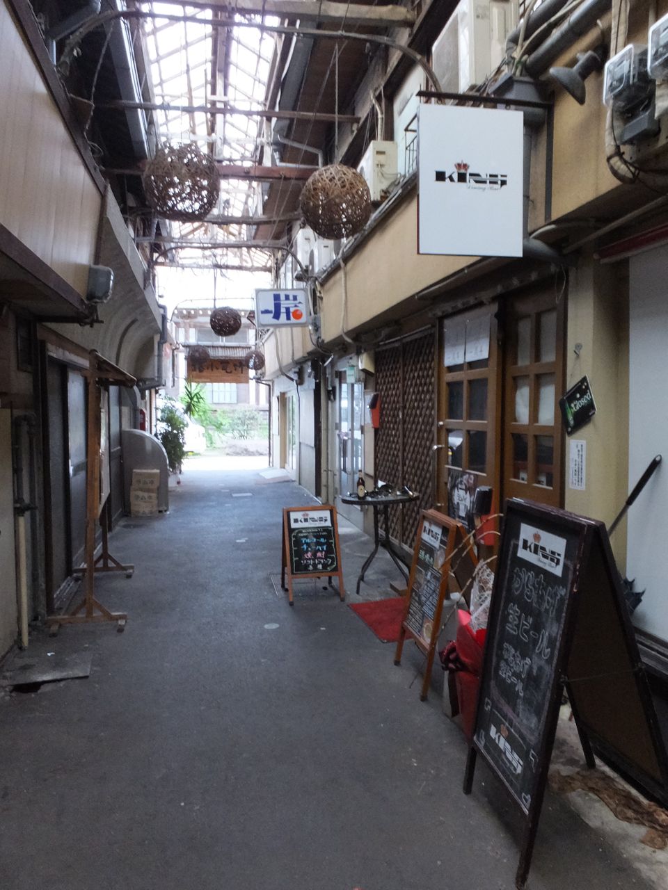 日本初のアーケード街とのことですが、昼間は営業している店がないようで誰も人がおらず、狭いので天井がガラスだかでほとんど陽が射さないので薄暗かったので、前回は2人連れで入れなかったのですが、今回は1人なので足を踏み入れてみました。