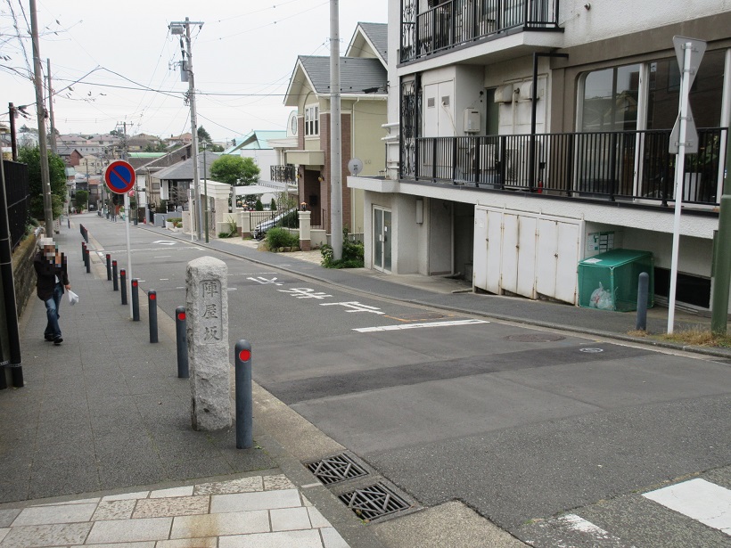 港の見える丘公園から山手本通りを外国人墓地まで進み、そこから鋭角に左折すると下り坂になります。ここが陣屋坂で、明治維新を挟んで英国軍が駐留していたことから陣屋坂と呼ばれるようになったようです。今は当時の面影はほとんどなく、閑静な住宅街が広がっていました。