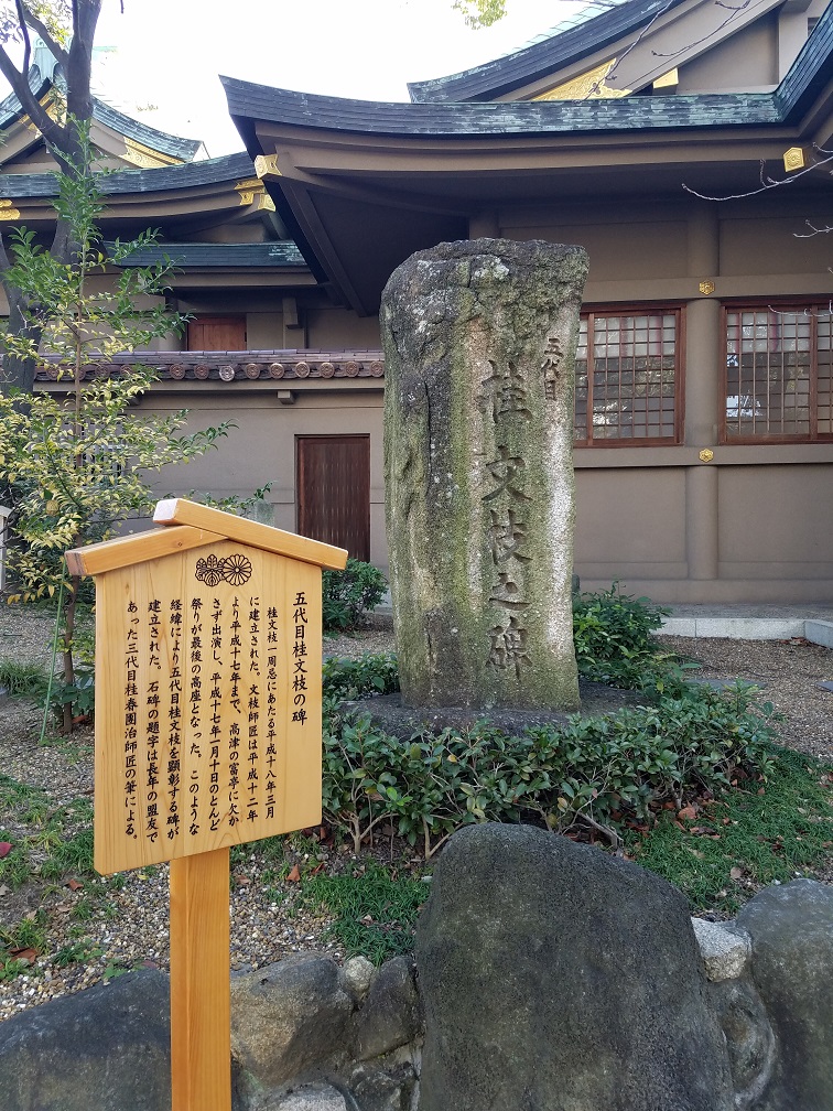 同じく境内にある高津の富亭で上方落語に尽力したこともありここに碑が立てたれたとのこと。