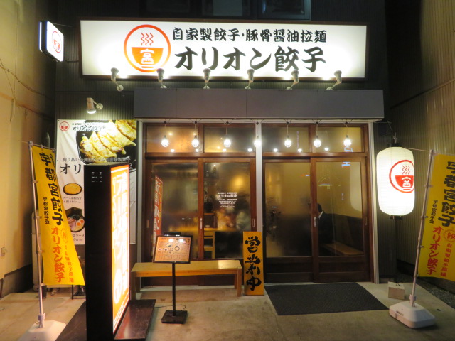 JR宇都宮駅西口駅前の駅前通り沿いにあります、餃子とラーメンが主体です、餃子の町宇都宮の餃子屋さんが多い駅前激戦区にある一店で、本店は名前が示すようにオリオン通りにあります、メインのオリオン餃子は410円、豚骨醤油ラーメンは842円で餃子とラーメンは種類が多くあります、カウンターがありますので一人でも入りやすいです。