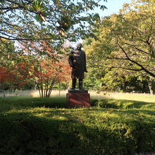 清水門を通って北の丸公園に入った右手の芝生の中に植え込みに囲まれて吉田茂像が建てられています。昭和56年に吉田茂生誕百年を記念して設置された銅像で、写真やテレビで良く見かけたことがあるコートを羽織り、右手にステッキを持つ姿です。皇居を向いて立っているのはわかりますが、何故北の丸公園に建てられたのかが分かりません。