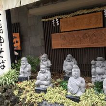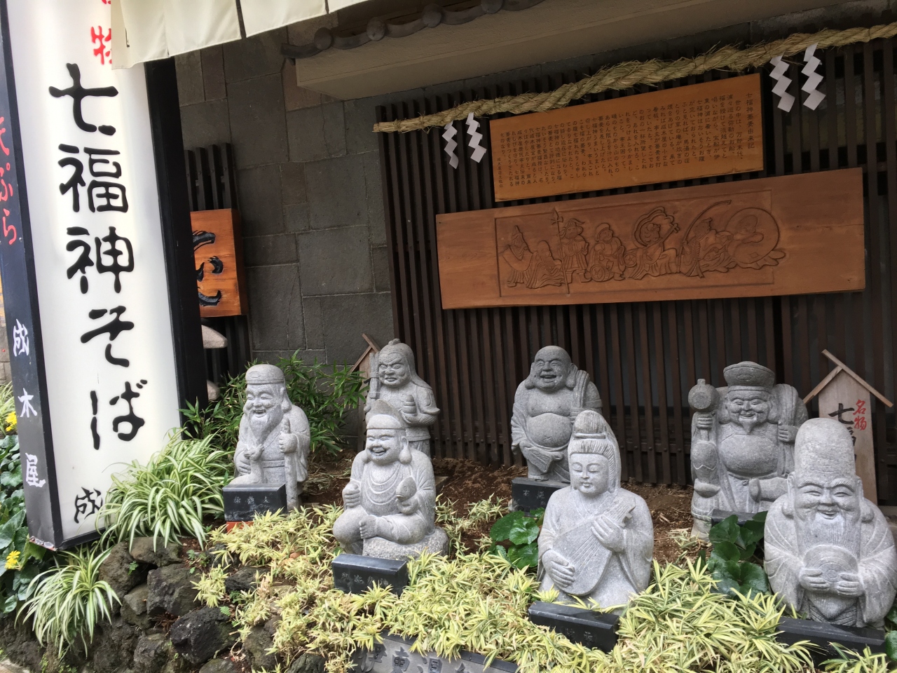 伊東の名物、寺社の七福神の他にお湯かけ七福神が市内公共浴場に建っており、七福神像がまとまっているスペースが湯の花通り中ほどにありました。時間がない人はここでお参りしてね、という事らしいです。なかなか可愛い神様達でした。