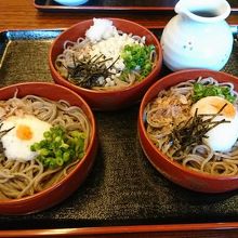 出雲大社二の鳥居近くにあるお蕎麦屋さんです。お昼時はお店の前は人だかりになっていました。店舗前では座って待つことができますし、ひざ掛けなども用意されていました。約40分ぐらいで店内に案内されました。太めのお蕎麦にちょっと甘めのつゆで美味しいお蕎麦でした。三色割子そばは違った味が楽しめますが、普通の割子蕎麦でも薬味の量は多かったです。